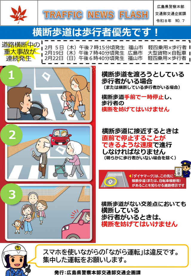 ※スマホを使いながらの「ながら運転」は違反です。集中した運転をお願いします。