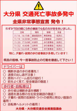 【大分県】交通死亡事故多発全県非常事態宣言