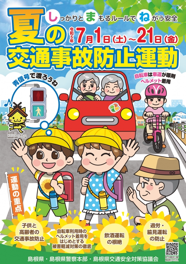 夏季の行楽等により、交通量の増加、交通の流れが変化、夏特有の解放感や暑さからくる疲れなどによる交通事故が予想されることから、県民一人ひとりが交通ルールの遵守と正しい交通マナーを実践し、交通事故防止の徹底を図ります。