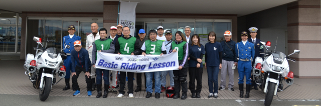 開講式では、徳島県の交通機動隊隊長補佐の方より徳島県内の交通事故状況及び運転時のかもしれない運転の徹底等の講話をしていただき、その後指導員リーダーより本日のスケジュール等を説明いただき講習に入り、講師は14名(徳島県交通機動隊の白バイ隊員4名、指導員10名)で、参加者が4名と少人数だったこともあり、受講者一人に白バイ隊員がマンツーマン、指導員が2名つき内容の濃い指導となりました。