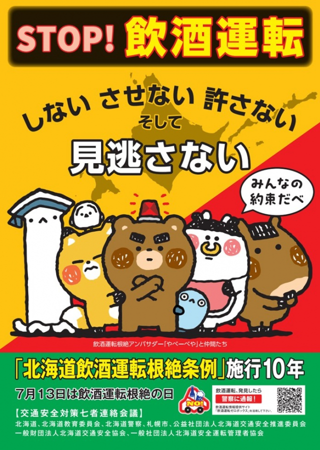 砂川市で発生した一家5人死傷の悲惨な飲酒ひき逃げ事件から10年が経過。そして11年が経過となる小樽の飲酒ひき逃げ事件が発生した7月13日が「飲酒運転根絶の日」と定められています。これらの痛ましい事故をきっかけに、飲酒運転による悲惨な事故を二度と繰り返さないという決意のもと制定されています。