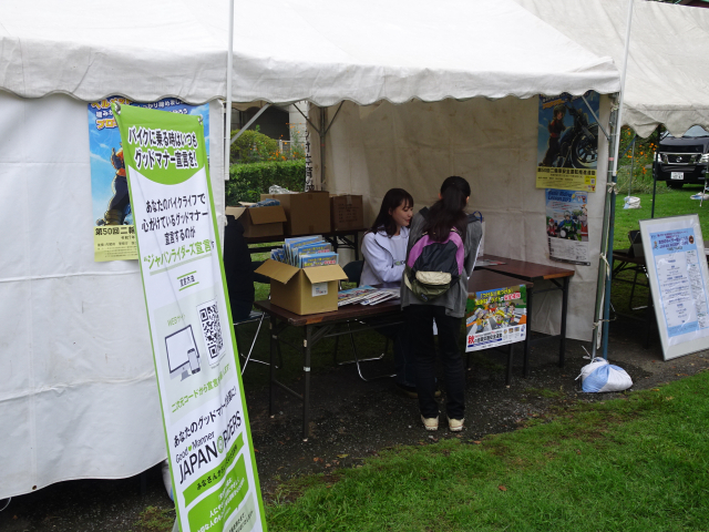 ジャパンライダーズブースでは、ジャパンライダーズ宣言をしていただいた方にノベルティを配布し、ゲストの坂元さんにもご協力いただき対応を行いました。また、ジャパンライダーズPRステージでは、坂元さんが日本二普協の活動紹介や二輪車の魅力、安全運転の大切さについて来場者へ向けて発信しました。