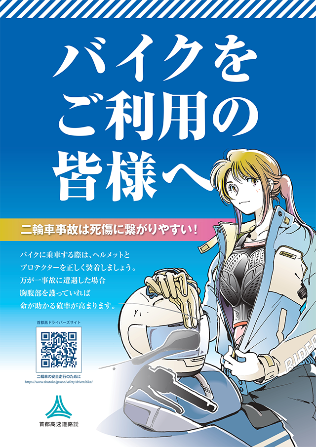 記録ずくめだった暑い夏が終わり、ライダーの方にはとても良い季節となりました。夜間や休日の早朝など、道の空いている時間帯に首都高速道路を利用される方も多いと思いますが、カーブ部での速度超過により壁面へ衝突する重大事故が連続発生しています。また、渋滞内のすり抜けによる接触転倒事故も起きております。安全な速度で、ゆとりのある運転に努めてください。
