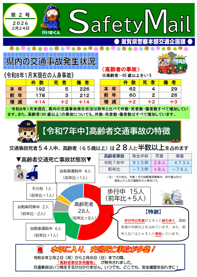 滋賀県 『セーフティメール第01号(2026年2月)高齢者交通事故の特徴』リーフレットデータ