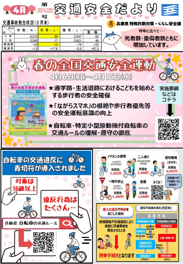 兵庫県 『交通安全だより249号(2026年4月)春の全国交通安全運動』