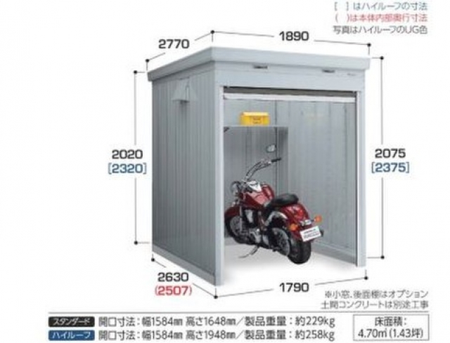 | 備考 | 【設備・サービス】 24時間利用可・駐車スペース・バイク収納可・即日契約可・施設見学可・利用者専 用水道 【初期費用】 前賃料2ヶ月分 ・クレジットカード払い可 【その他費用】 毎月かかるのは賃料のみです。 敷金・礼金・事務手数料・管理料等はかかりません。 月割でのご契約となります。 ----------------------- ガレージライフって、ホント人生を豊かにしますよね。 八王子市八木町のバイクガレージ 全11区画で す。 土間タイプ、アプローチからフラットで入出庫可能になります。 甲州街道沿いですので、視認性も よい場所です。 ユニットは土間タイプの幅1700mm奥行き2700mmのハイタイプです。 ・平置きシャッタータイ プ ・バイク用チェーンロックバー ・フルフラット仕様 ・アスファルト舗装 ・ディンプルキー ・荷捌き 用一時駐車場あり シャッタータイプは閉塞感もないのでガレージ内での整備もラクラク。 大切な愛車を ガレージに置いておける安心感。 乗りたい時にバイク用品や工具があり、すぐに乗れる、すぐ整備でき るという機動性が魅力です。 契約する時は排気量、車長、ハンドル幅をみて、少し余裕のサイズを選ぶ とよいと思います。 リッターSSやハーレー・トライクも安心して入出庫できます。 ※空き状況などお気軽にお問い合わせください。 【お問合せ先】 TEL :042-686-0788 Mail:pm-info@mtx-r.co.jp 【ホームページ】https://www.xn--eckqi1bzh7g8d4003azph81e4v1b.com/ |
