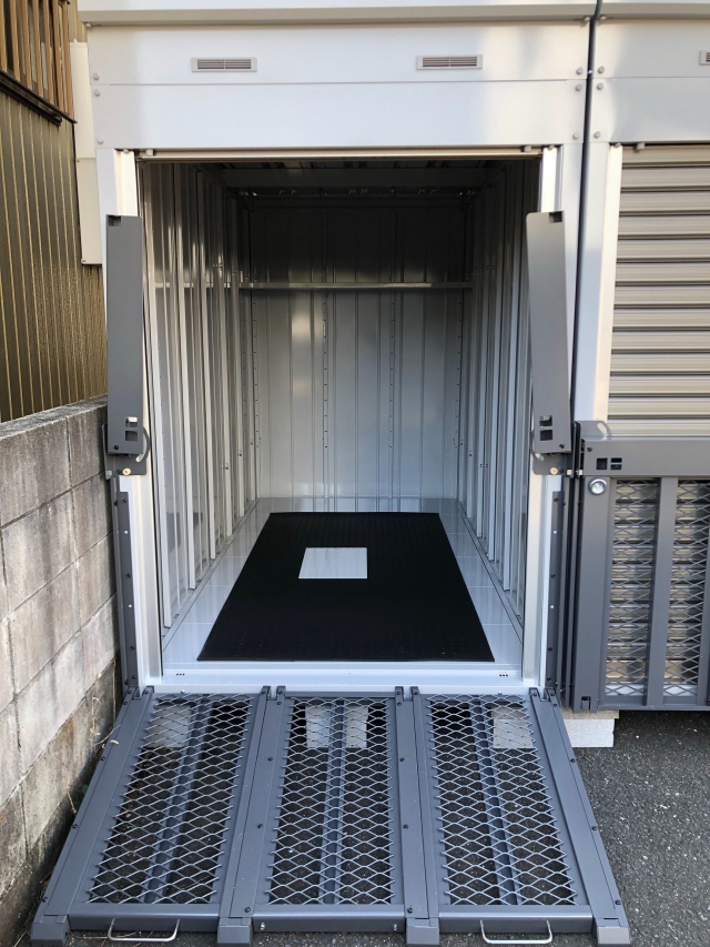 | 備考 | コンテナ式・スロープ付き・シャッター付き・バイクマット付き・鍵2つ付き・照明(常時・センサー・取外し可能)付き |