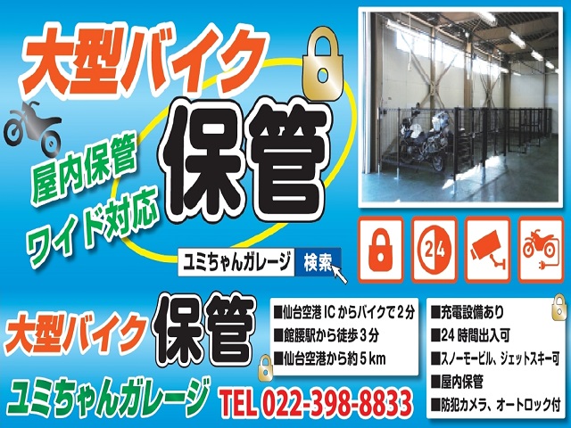 | 備考 | http://www.oomori-tp.co.jp/yumigarage.html ・24時間入出庫可能 ・防犯カメラ有 ・オートロック有 ・バッテリー充電可能 ・乗用車駐車スペース有 ・走らせたい場所へ全国集配可能(別途費用が必要です) |
